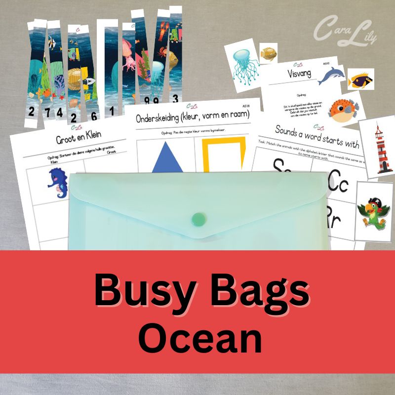 We offer busy bags that include 5 activities in one busy bag, which is perfect to take along on the road or to keep your child busy at the doctor’s office. Everything that your child will need to complete the activities, is included in the busy bag, no need for you to buy anything extra. It is simple activities stored in a bag so they are always ready to go! All our activities are designed to encourage early childhood development in ways that are fun and explorative.
